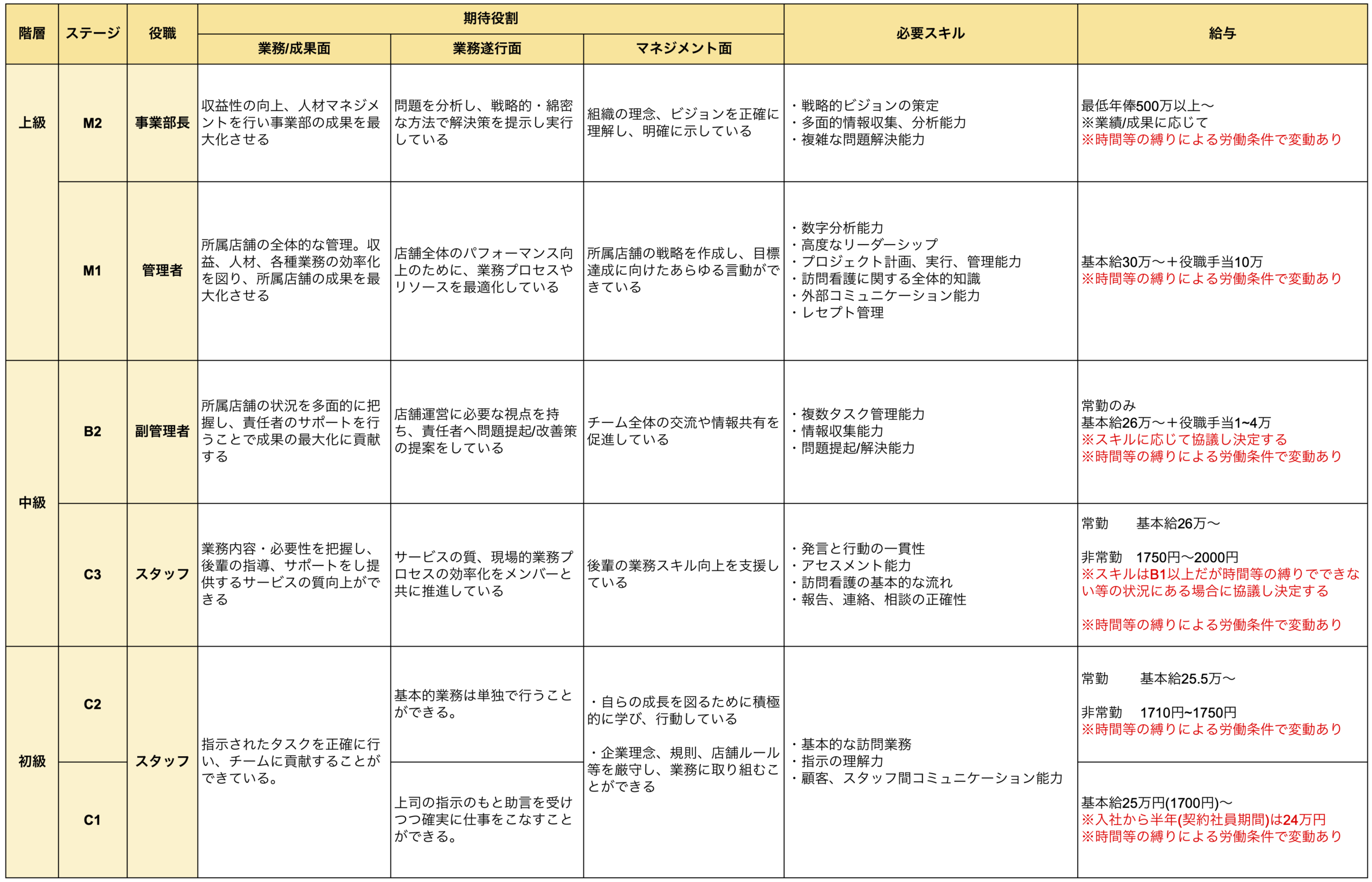 このようなキャリアパスが明確になっているので、仕事においての目標を立てやすくなり、成長意欲やモチベーションにつながります!